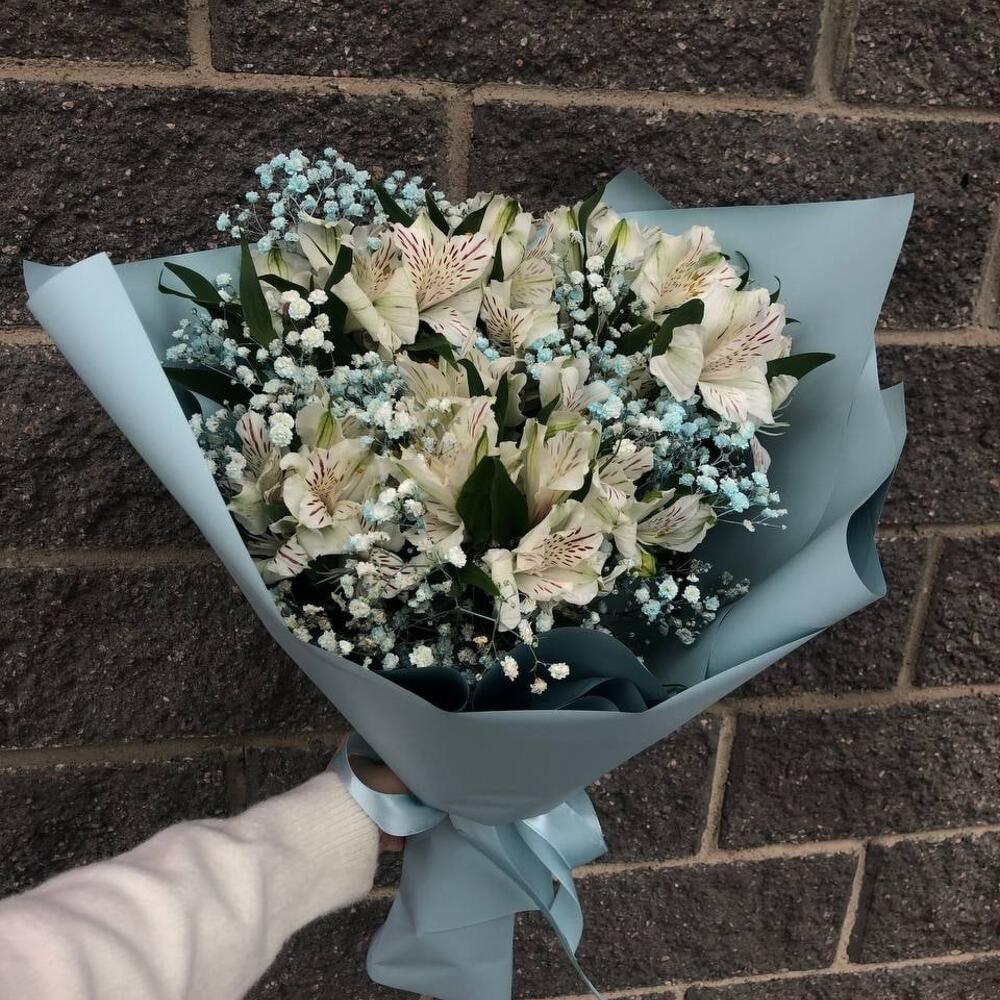 Альстромерия – 11 шт.Гипсофила – 2 шт.Лента атласная – 1 шт.Упаковка матовая – 1 шт.