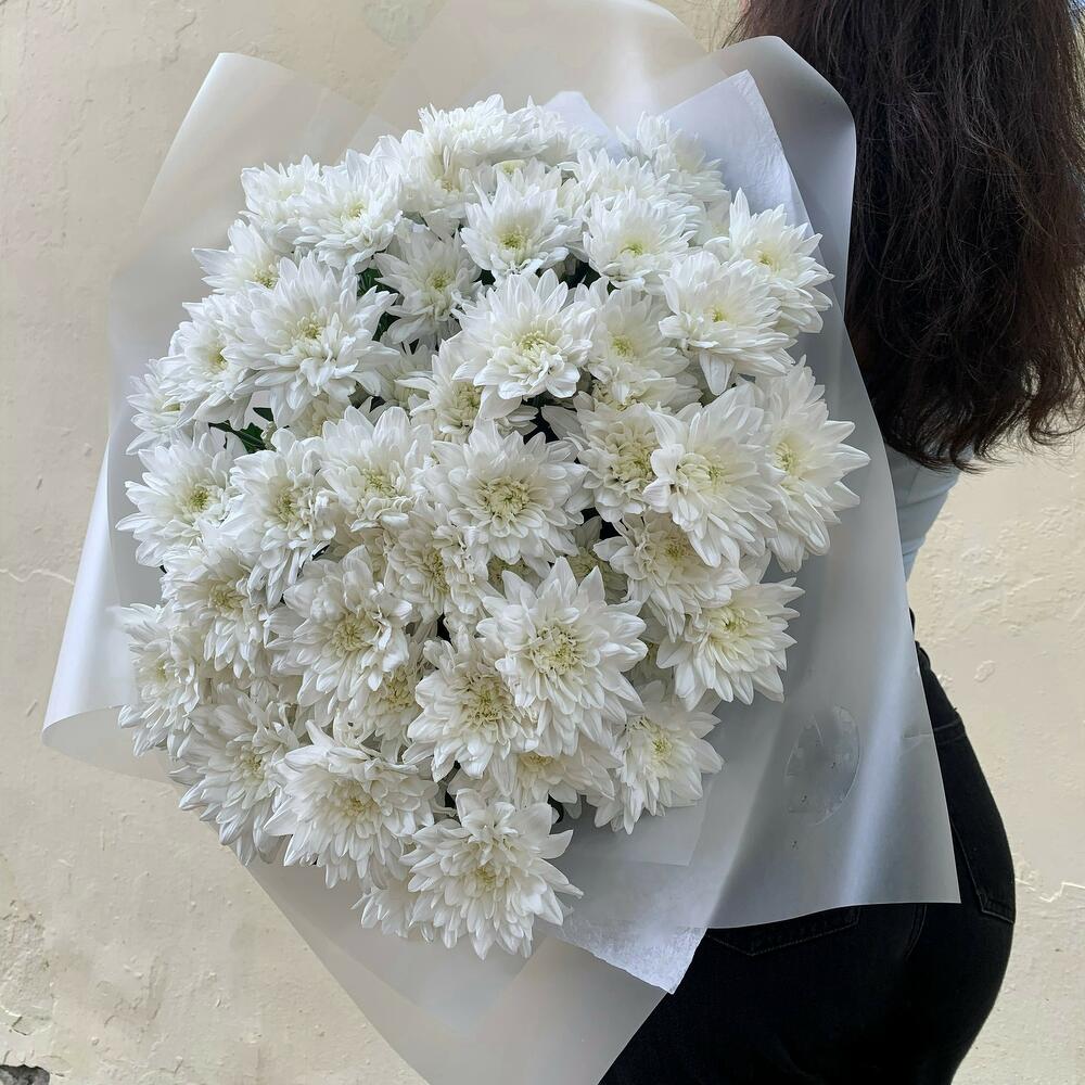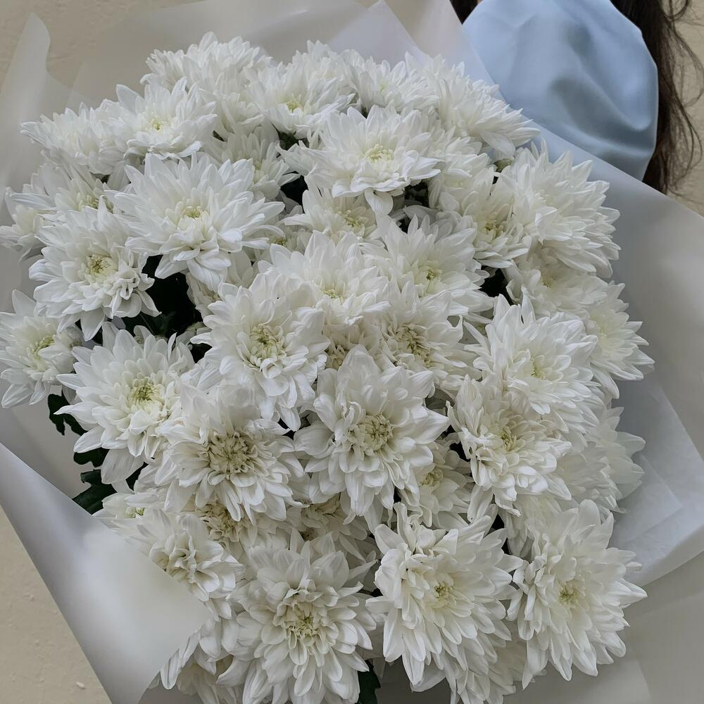 15 белых кустовых хризантем