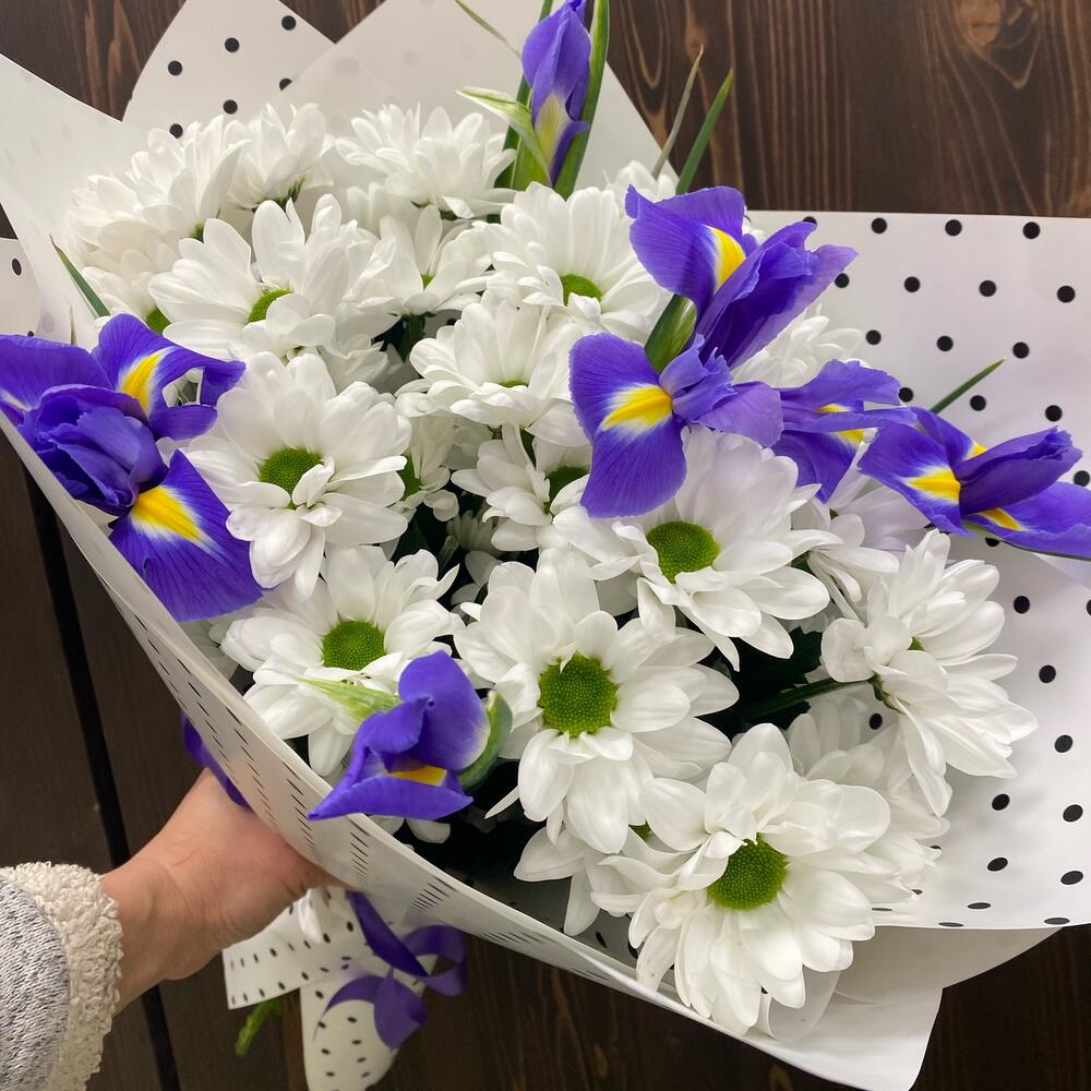Букет из хризантем и ирисов