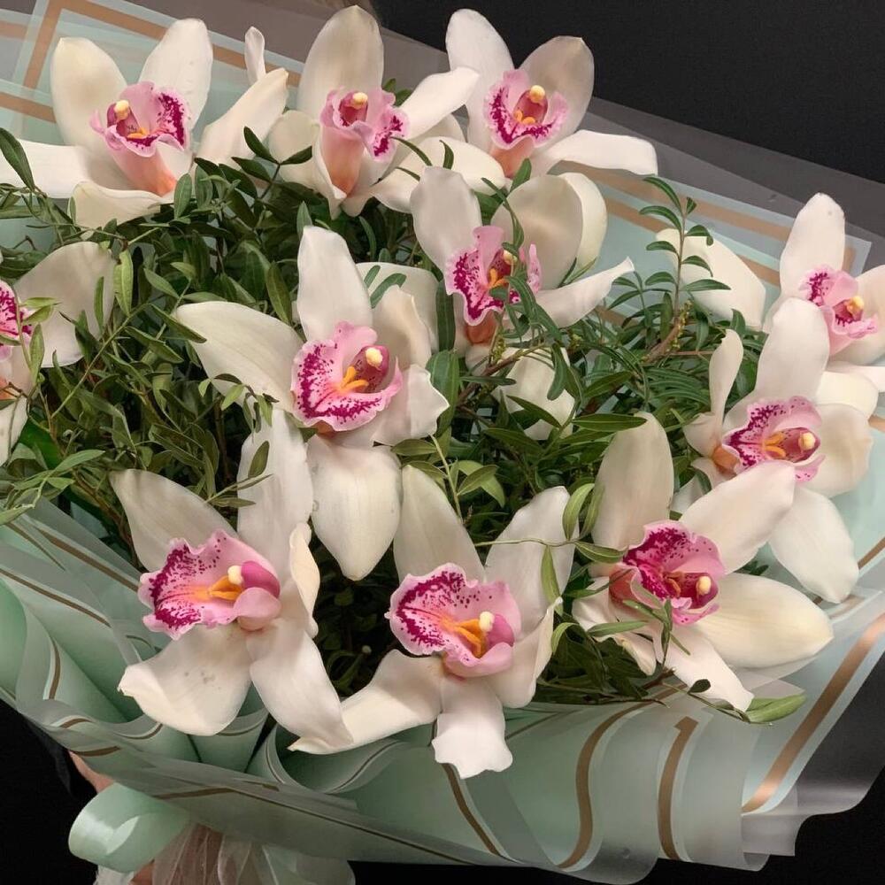 Орхидея Цимбидиум – 11 шт.удлинитель для орхидеи – 11 шт.Фисташка – 6 шт.Упаковка дизайнерская – 3 шт.
