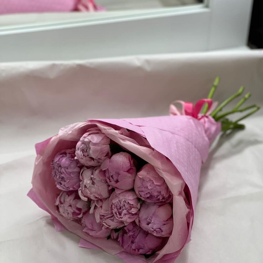 Лента атласная – 1 шт.пион розовый премиум – 11 шт.упакрвк – 2 шт.