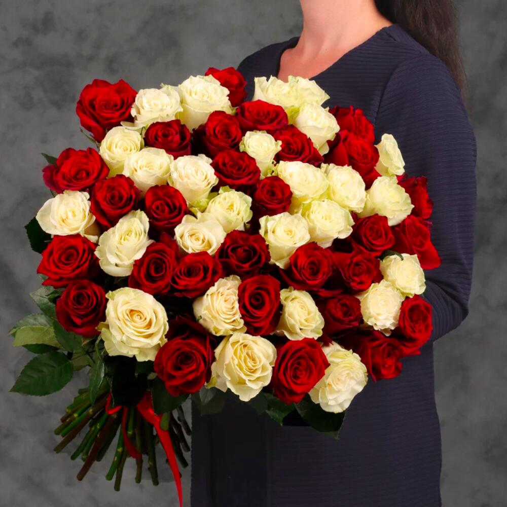 Букет 55 красных и белых роз